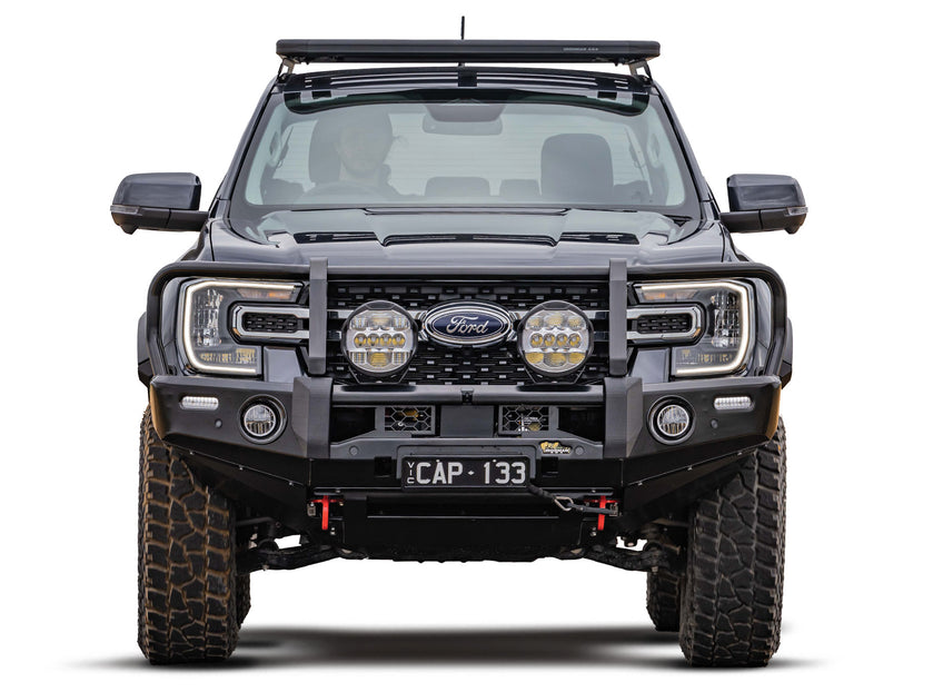 LED Fog lights are included in the Deluxe bull bar to suit Ford Ranger Next Gen.